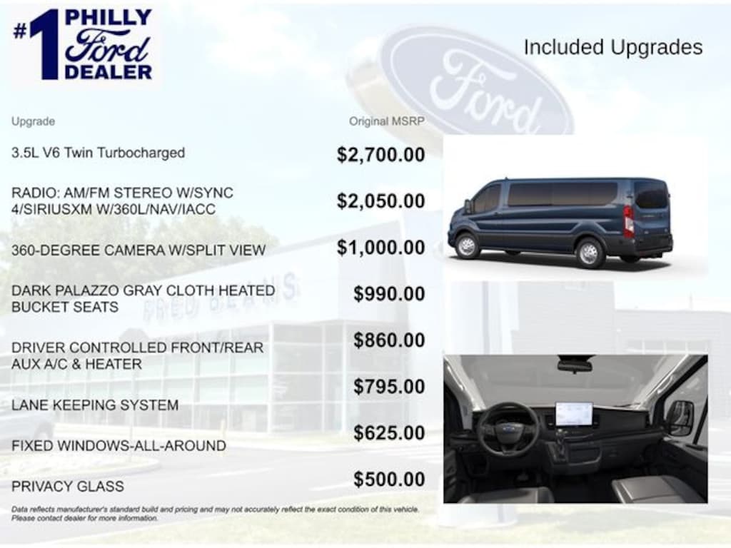 Blue Metallic 2025 Ford Transit-150 AWD 10-Speed Automatic with Overdrive EcoBoost 3.5L V6 GTDi DOHC 24V Twin Turbocharged Price includes: $6000 - Retail Customer Cash