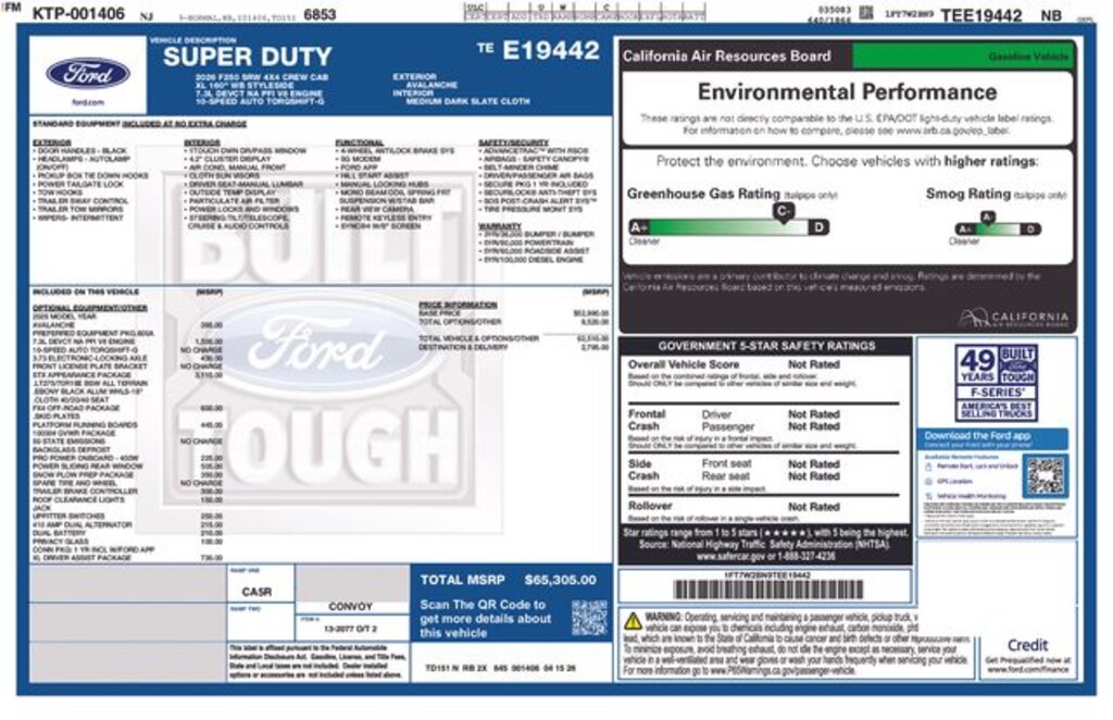 CALL NOW 908-835-8100, 4WD. 2026 Ford F-250SD XL XL 7.3L V8 PFI SOHC 16V Federal 405hp 4WD Avalanche Price includes: $1500 - Retail Customer Cash