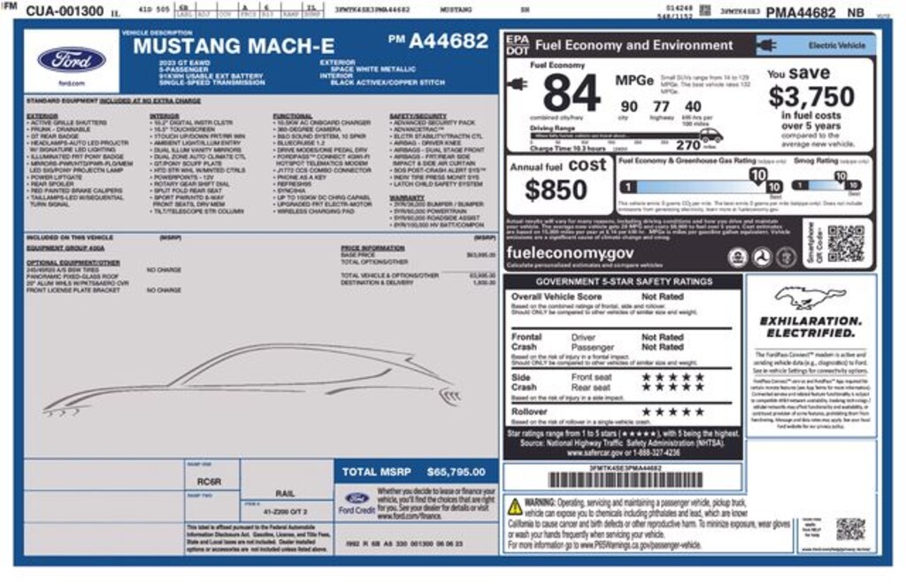 - Fuel economy combined: 84mpge